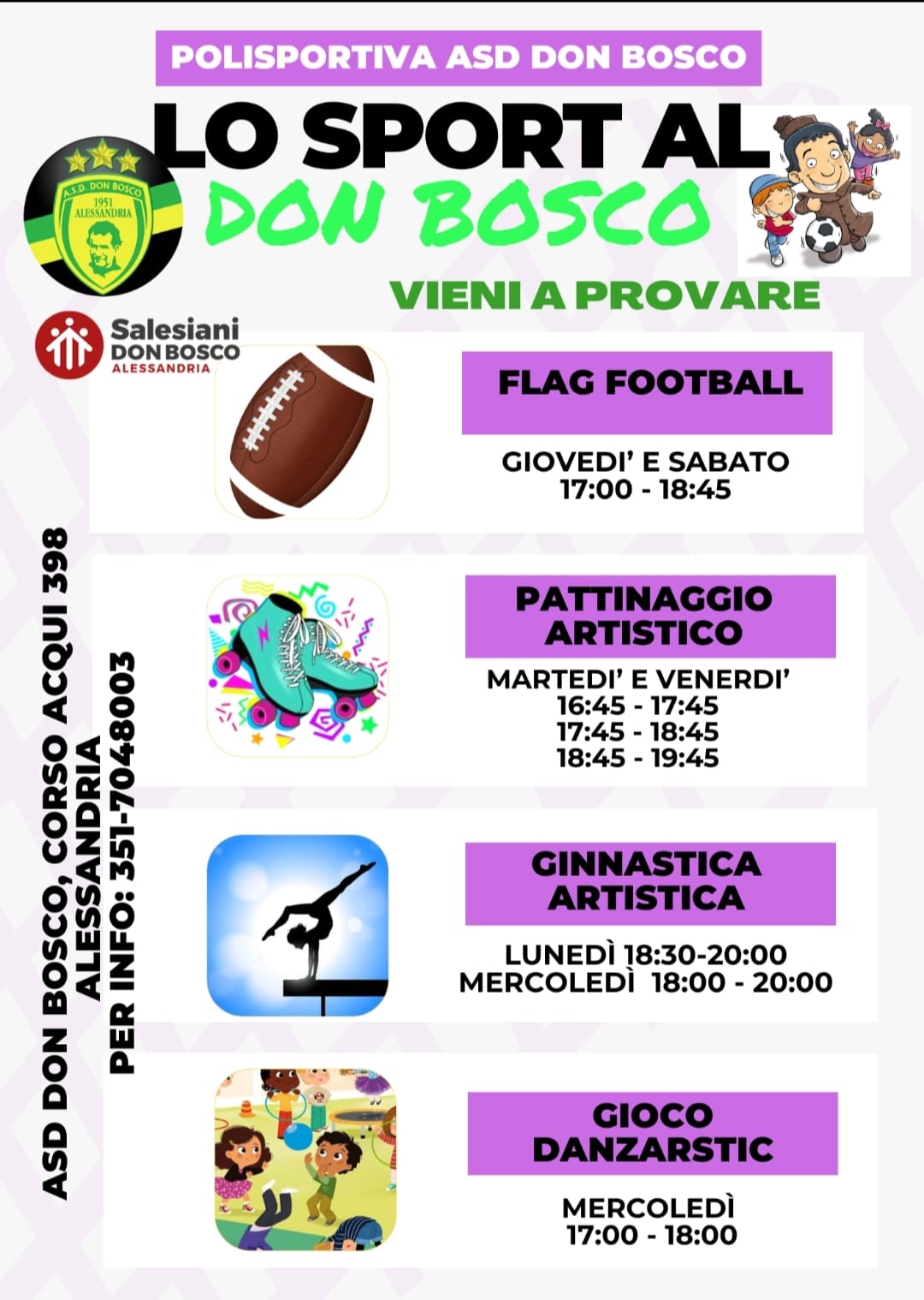 Come ogni anno la Polisportiva ASD Don Bosco offre diverse proposte dedicate allo sport per tutti i giovani del Don Bosco.