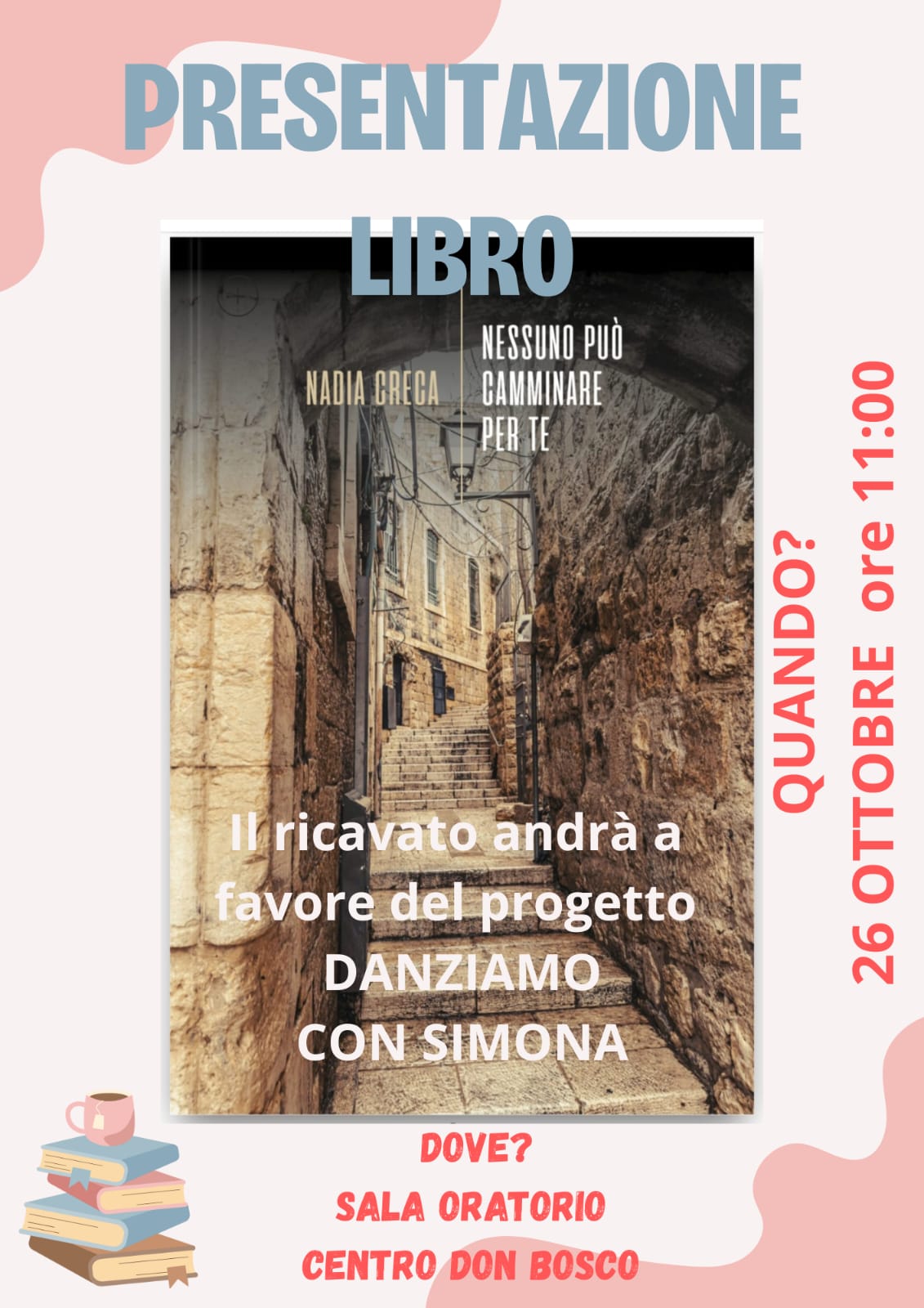 Published On: Ottobre 21st, 20250,5 min read40 wordsViews: 56Tags: Danziamo con Simona, Nadia Creca, Nessuno può camminare per te, presentazione libro, progetto Danziamo con Simona